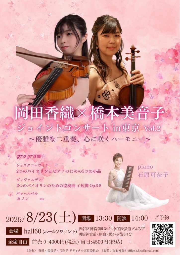 【コンサート】8/23(土) 岡田香織✕橋本美音子 ジョイントコンサート in 東京 Vol2